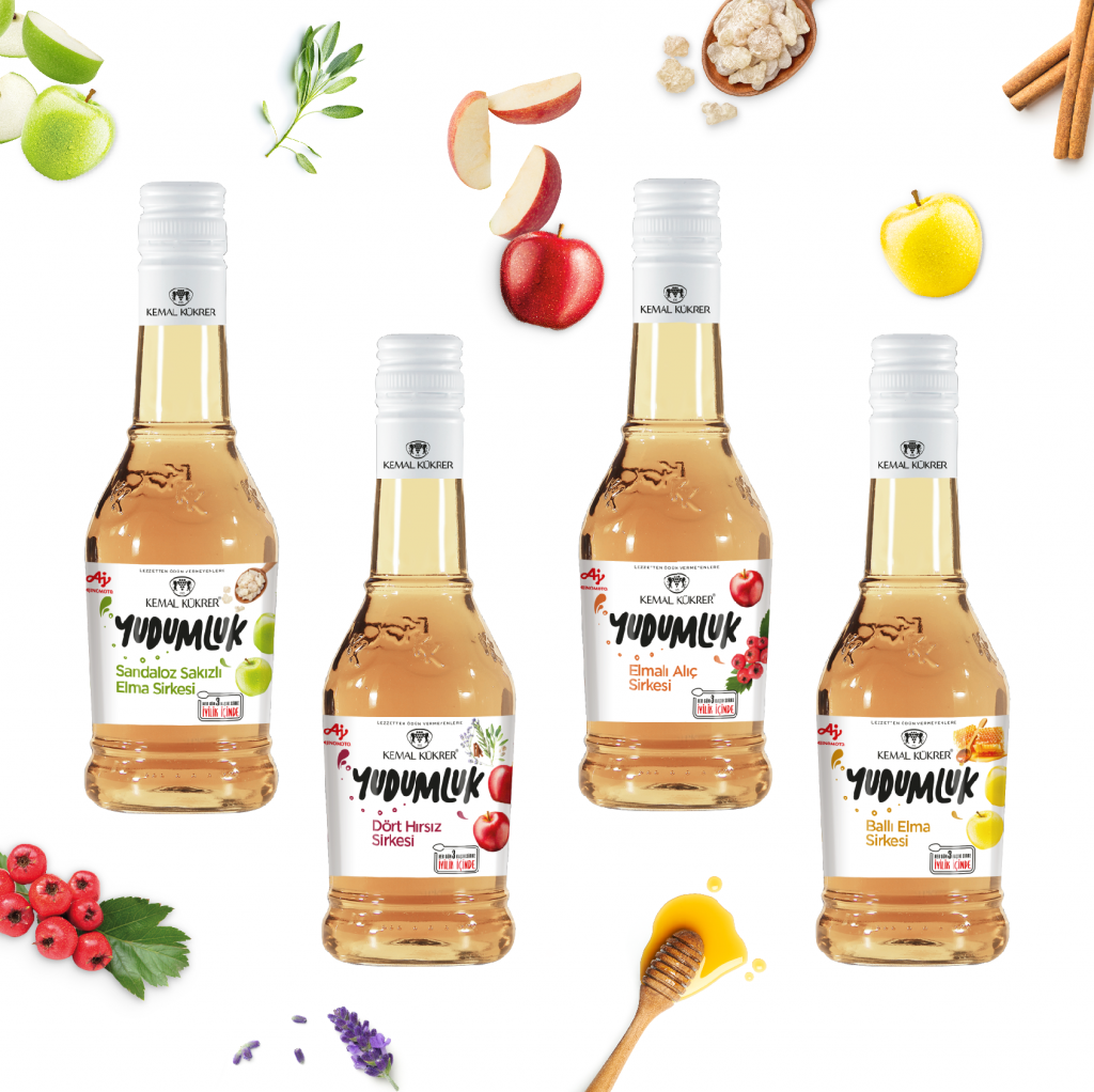 Covid19’un tüketicilerin alışkanlıklarında yarattığı değişimlerden birisi de artan sirke kullanımında kendini gösterdi. Eskiden çoğunlukla mutfaklarda ya da temizlikte kullanılan sirke, bu dönemde sağlık amaçlı içilerek kullanımındaki artışla beraber hızla büyüyen kategorilerden biri oldu. İçilerek tüketilmesindeki yüksek artışa rağmen, içmek için özel üretilen varyantların olmadığı pazarda, Kemal Kükrer markası yeni “Yudumluk” kategorisiyle içimi daha kolay yeni bir sirke ailesi yarattı. “Yudumluk Sirkeler” serisinde Sandaloz Sakızlı Elma Sirkesi, Dört Hırsız Sirkesi, Alıç Sirkesi ve Ballı Elma Sirkesi olmak üzere dört farklı sirke bulunuyor.