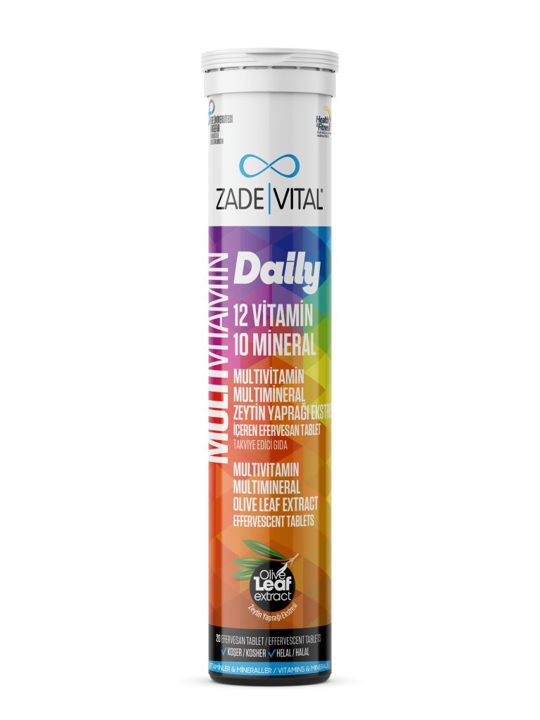 Normal bağışıklığın desteklenmesine katkıda bulunan Zade Vital Daily Multivitamin Multimineral içeren efervesan tablet, yoğun tempoda enerjinizi korumanıza yardımcı oluyor. Suda hızlı çözünen formu ile kullanım kolaylığı sağlayan efervesan tablet; zengin vitamin, mineral ve bitkisel ekstre içeriği ile vücudun günlük ihtiyacını karşılamaya yardımcı oluyor.